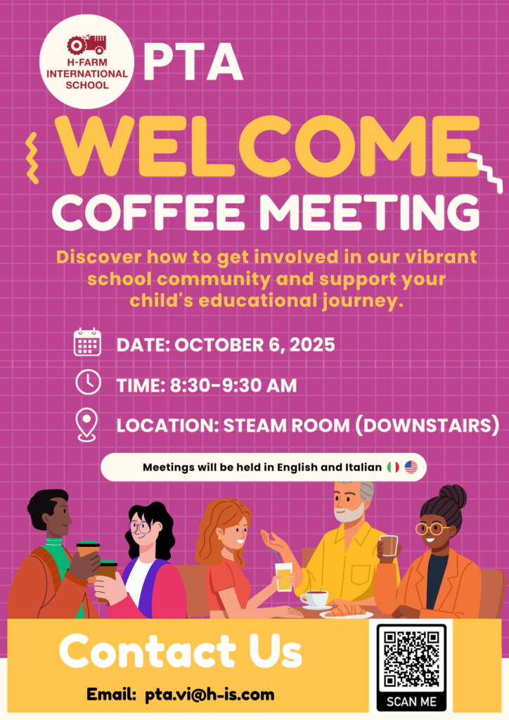 Unisciti a noi lunedì 6 ottobre 2025 dalle 8.30 alle 9.30 nella STEAM Room (piano terra). Incontra il PTA, scopri come partecipare attivamente e sostenere il percorso educativo di tuo/a figlio/a.