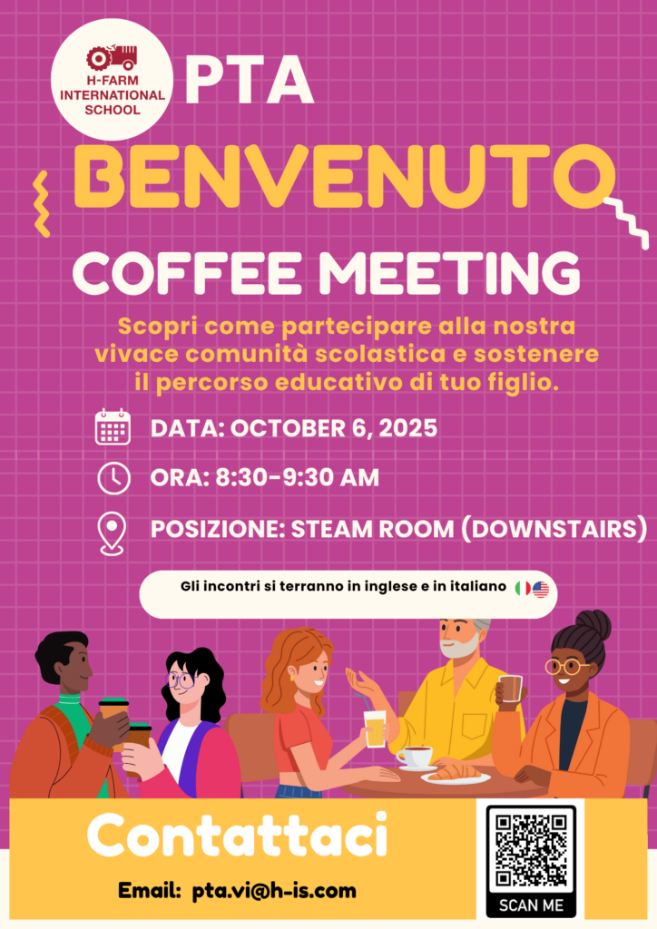 L’Associazione Genitori e Insegnanti (PTA) invita con piacere tutte le famiglie a partecipare al Volunteer Coffee Meetingun incontro informale e conviviale per scoprire come contribuire alla vita della scuola e sostenere il percorso educativo dei propri figli.