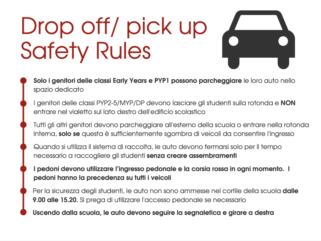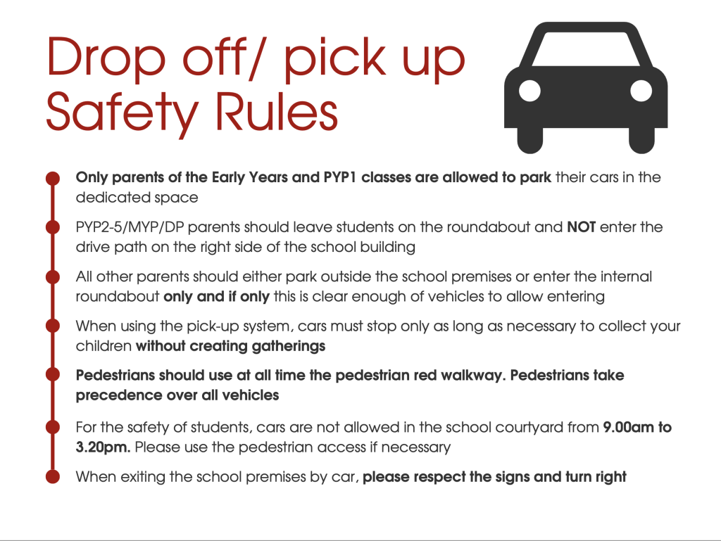 The only exception is reserved to our youngest students of the Early Years who, always under their guardians’, will be allowed to remain in the front school garden until 4:30 p.m.